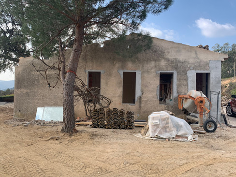 The back wall of the house that leads onto the terrace had been removed completely and new concrete pillars were in the process of being created for the new sliding doors. The builders had just started removing the roof on the far side of the house too.