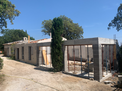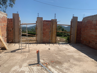 At the house, progress has been quite slow since the last visit, however the rebuild has started. The pillars and concrete beam on the car port are up and the new space makes the front of the house feel very different when coming in through the front gates.
