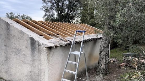 After sorting a couple of bits of paperwork, including setting up some insurance to cover the renovation (my existing policy didn't cover this so I had to cancel it and move to a new policy with a different company) and submitting the official documentation to start the work (Déclaration d'Ouverture du Chantier) to the mairie, the builders started the work a couple of weeks ago as scheduled. The very first thing I did that Monday morning was open my webcam and take a photo of the first tiles being removed - it's a new chapter for the house and the removal of those first tiles felt like an important moment to capture!