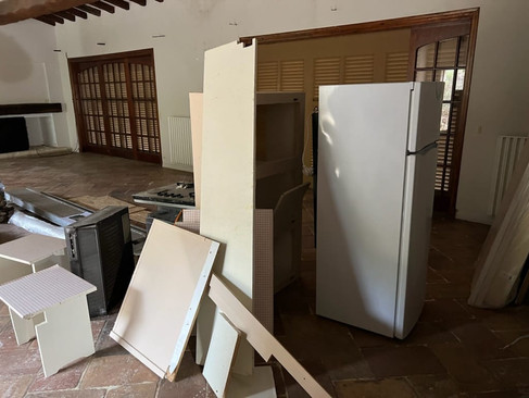 Demolition work inside the house has also begun. The kitchen is mostly out and ready to be taken to la déchetterie and the builders have removed all of the existing cupboards in le salon to expose the walls. Surprisingly (to me at least) there was no insulation at all in the part they uncovered. The topic of insulation has already been mentioned by the builders as the new windows are thicker than the old ones so it's likely I will have to pay an additional price for extra insulation. On verra!